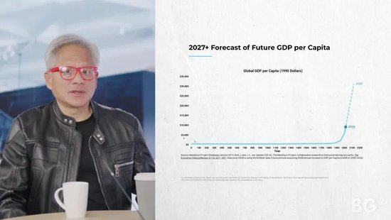 主持人Gerstner: 这很有意思。从历史上看,在工业革命和数字革命之前,全球GDP增长非常缓慢,之后才开始加速。您所说的,其实是在描绘一个相似的场景:全球GDP增长将再次提速,因为我们拥有了数十亿为我们工作的AI“同事”。如果GDP是劳动力和资本投入的产出,那么它必然会加速。